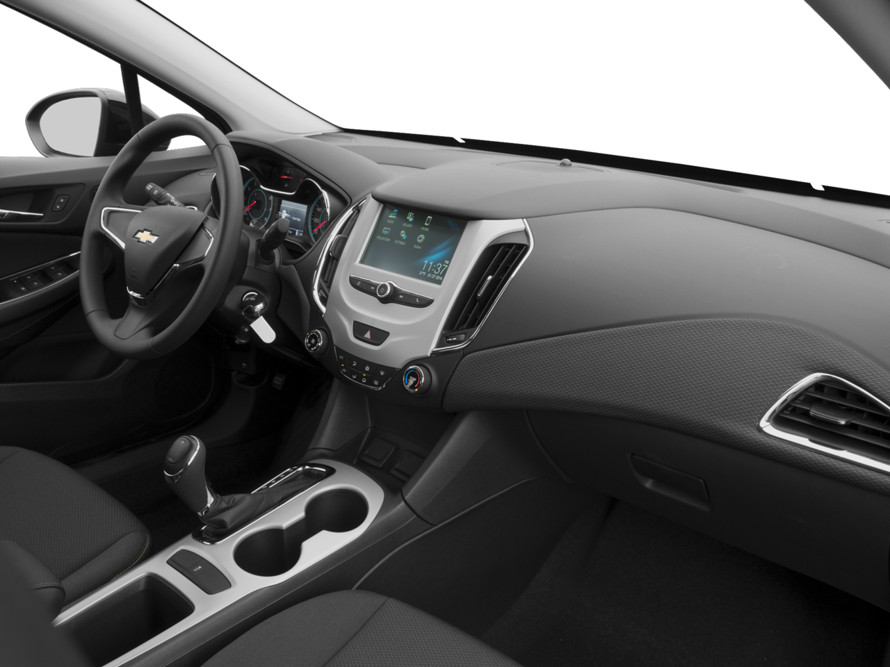 The thoughtfully designed interior of this Cruze LS is both stylish and functional. Slip into the supportive Cloth Seat Trim and take advantage of features like the Chevrolet MyLink infotainment system with a 7-inch touchscreen, Apple CarPlay/Android Auto, and a 4-Speaker Audio System. Stay connected and entertained on the go, all while enjoying the comfort of the climate-controlled cabin.