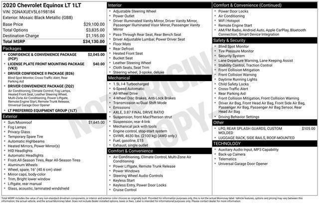Mosaic Black Metallic 2020 Chevrolet Equinox LT 4D Sport Utility AWD 1.5L DOHC 6-Speed Automatic Electronic with Overdrive