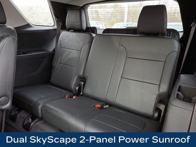 AWD, 7-Passenger Seating (2-2-3 Seating Configuration), Apple CarPlay/Android Auto, Auto High-beam Headlights, Black Door Handles, Bose Premium 10-Speaker Audio System Feature, Dual SkyScape 2-Panel Power Sunroof, Front License Plate Bracket Mounting Package, Heated door mirrors, Heated front seats, Heated rear seats, Heated steering wheel, Leather steering wheel, Memory seat, Navigation System, Ornamentation, Perforated Leather-Appointed Seat Trim, Power driver seat, Power Liftgate, Preferred Equipment Group 1LZ, Radio: Chevrolet Infotainment 3 Premium System, Redline Edition, Remote keyless entry, SiriusXM w/360L, Ventilated front seats, Wheels: 20 Gloss Black Painted Alum w/Red Stripes.