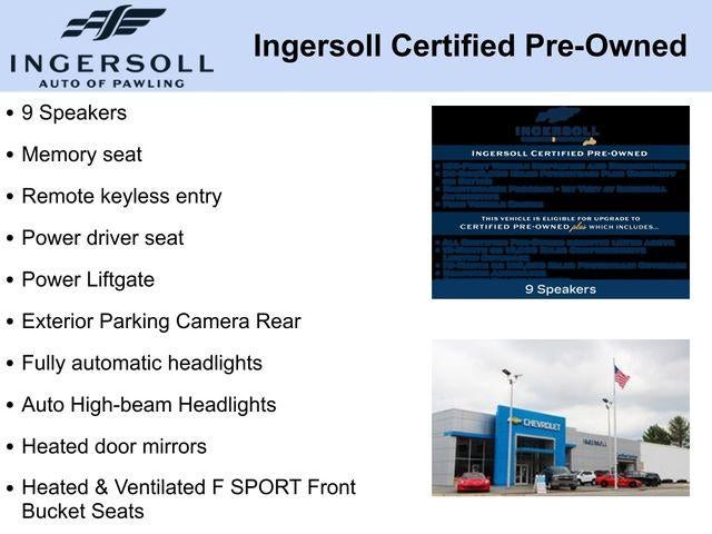 20 x 8 Aluminum Wheels, 9 Speakers, Apple CarPlay/Android Auto, Auto High-beam Headlights, Exterior Parking Camera Rear, F SPORT NuLuxe Seat Trim, Fully automatic headlights, Garage door transmitter: HomeLink, Heated & Ventilated F SPORT Front Bucket Seats, Heated door mirrors, Heated front seats, Heated steering wheel, Memory seat, Power driver seat, Power Liftgate, Rain sensing wipers, Remote keyless entry, Ventilated front seats.