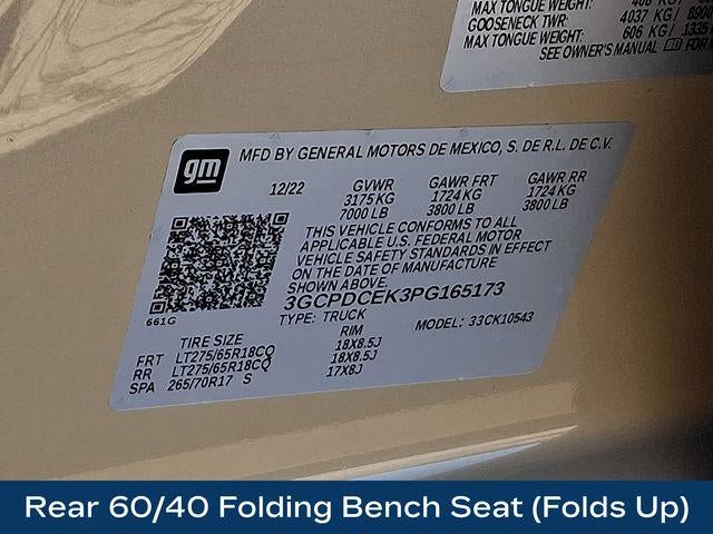 10-Way Power Driver Seat w/Lumbar, 120-Volt Instrument Panel Power Outlet, 3.5 Monochromatic Display Driver Info Center, Auto High-beam Headlights, Auto-Locking Rear Differential, Bluetooth® For Phone, Color-Keyed Carpeting Floor Covering, Compass, Custom Convenience Package, Deep-Tinted Glass, Dual Rear USB Ports (Charge Only), Electrical Steering Column Lock, Electronic Cruise Control, Front Rubberized Vinyl Floor Mats, HD Rear Vision Camera, Manual Tilt Wheel Steering Column, OnStar & Chevrolet Connected Services Capable, Performance Red Recovery Hooks, Power Front Windows w/Driver Express Up/Down, Power Front Windows w/Passenger Express Down, Power Rear Windows w/Express Down, Preferred Equipment Group 2CX, Rear 60/40 Folding Bench Seat (Folds Up), Rear Rubberized-Vinyl Floor Mats, Remote Keyless Entry, SiriusXM Radio, Standard Tailgate, Trailering Package, Wireless Phone Projection.