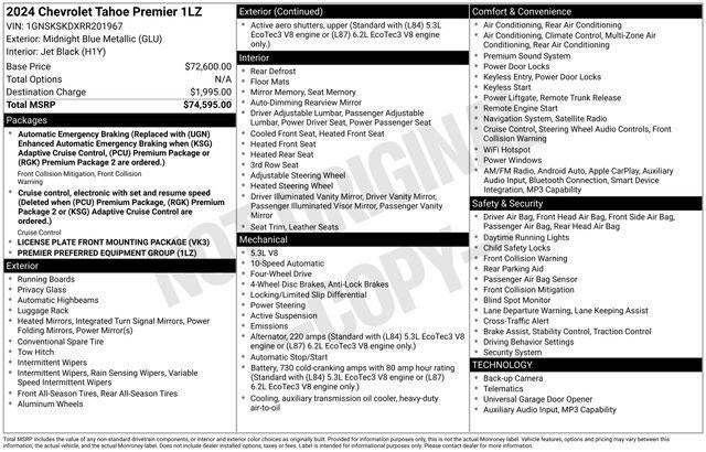With its striking blue exterior and impeccable attention to detail, the 2024 Chevrolet Tahoe Premier is a vehicle that commands attention. Whether you're navigating the city streets or conquering the open road, this SUV is ready to elevate your driving experience to new heights.