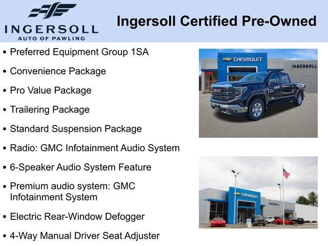 2 Charge/Data USB Ports, 220 Amp Alternator, 4-Way Manual Driver Seat Adjuster, 4-Way Manual Passenger Seat Adjuster, 6-Speaker Audio System Feature, Apple CarPlay/Android Auto, Auto High-beam Headlights, Automatic Emergency Braking, Auxiliary External Transmission Oil Cooler, Chrome Header w/Flat Black Grille Insert Bars, Convenience Package, Cruise Control, Deep-Tinted Glass, Electric Rear-Window Defogger, Engine Block Heater, EZ Lift Power Lock & Release Tailgate, Front & Rear Black Molded Splash Guards (LPO), Front 40/20/40 Split-Bench Seat, Front Frame-Mounted Black Recovery Hooks, GMC Connected Access Capable, HD Rear Vision Camera, Heated Power-Adjustable Outside Mirrors, Integrated Trailer Brake Controller, IntelliBeam Automatic High Beam On/Off, Lane Keep Assist w/Lane Departure Warning, LED Cargo Area Lighting, OnStar & GMC Connected Services Capable, Outside temperature display, Power Door Locks, Power Front Windows w/Driver Express Up/Down, Power Front Windows w/Passenger Express Down, Power Rear Windows w/Express Down, Preferred Equipment Group 1SA, Premium audio system: GMC Infotainment System, Pro Value Package, Push Button Start, Radio: GMC Infotainment Audio System, Remote Keyless Entry, Solar Absorbing Tinted Glass, Spray-On Pickup Bedliner, Standard Suspension Package, Trailering Package, Wheels: 17 x 8 Silver Painted Steel, Wi-Fi Hotspot Capable, Wireless Apple CarPlay/Wireless Android Auto.