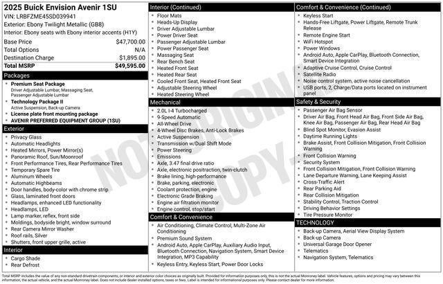 Whether you're embarking on a family adventure or seeking a sophisticated daily driver, the 2025 Buick Envision Avenir is the perfect companion. Experience the unparalleled blend of style, performance, and technology that sets this SUV apart. Visit our showroom today and let us demonstrate why the Envision Avenir should be your next automotive investment.