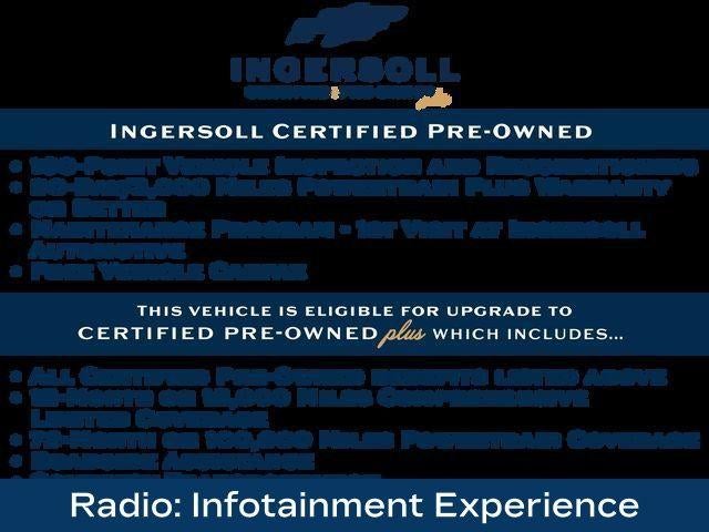 Certification Program Details: This vehicle is being sold as Ingersoll Certified Pre-Owned. This program gives you piece of mind. You will receive. **A Vehicle Inspection and Reconditioning Form. **A Vehicle Carfax. **90 Days or 4000 miles of Powertrain Plus Limited Coverage **A Free Maintenance event including oil change and tire rotation within the first 12mo or 12,000 miles of driving (at an Ingersoll Automotive Location). This vehicle is eligible to be upgraded to Ingersoll Certified Plus for $749. That will give you the additional benefits of 12mo or 12,000 miles of limited exclusionary coverage, 6 years or up to 100,000 miles of powertrain limited coverage (from original in-service date), courtesy transportation for covered repairs, and road side assistance. **A Vehicle Exchange Program if dissatisfied in the first 3 days or 150 miles of ownership. This is not a manufacturer sponsored program