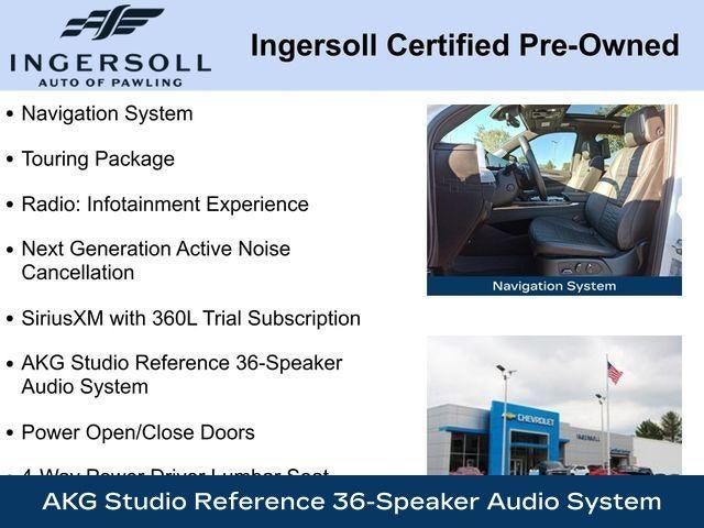 2-Speed Active Transfer Case, 4-Way Power Driver Lumbar Seat Adjuster, 4-Way Power Front Passenger Lumbar Seat Adjuster, Air Ride Adaptive Suspension, AKG Studio Reference 36-Speaker Audio System, Apple CarPlay/Android Auto, Auto High-beam Headlights, Blind Zone Steering Assist with Trailering, Exterior Parking Camera Rear, Front Auxiliary 12-Volt Power Outlet, Full Semi-Aniline Leather Seats with Mini-Chevron, Fully automatic headlights, Headphones, Heads-Up Display, Heated and Ventilated Driver and Front Passenger Seats, Heated door mirrors, Heated Driver and Front Passenger Seats, Heated steering wheel, Hitch Guidance with Hitch View, Integrated Trailer Brake Controller, Memory seat, Navigation System, Next Generation Active Noise Cancellation, Night vision lights, Power Liftgate, Power Lumbar Massage Front Passenger Seat, Power Open/Close Doors, Power Panoramic Tilt-Sliding Sunroof, Radio: Infotainment Experience, Rain sensing wipers, Rear Seat Entertainment System, Reconfigurable Full-Color Head-Up Display, SiriusXM with 360L Trial Subscription, Soft Closing Front and Rear Doors, Split folding rear seat, Steering wheel memory, Theft-Deterrent Alarm System, Touring Package, Wheel Locks, Wheels: 22 18-Spoke Alloy, Wireless Apple CarPlay/Wireless Android Auto.