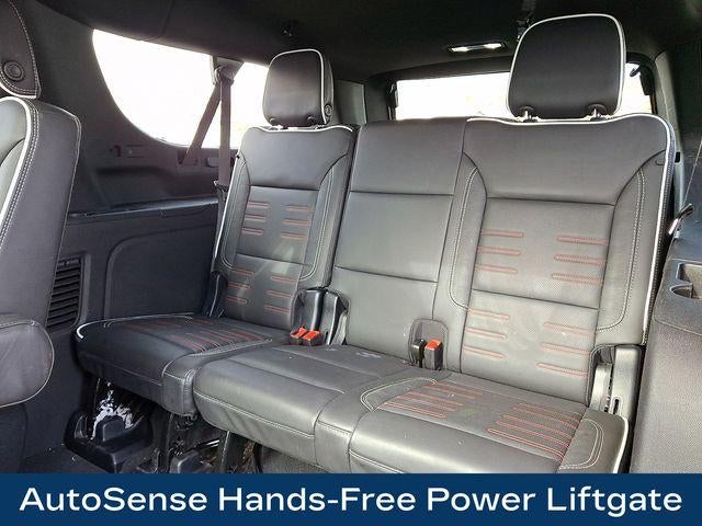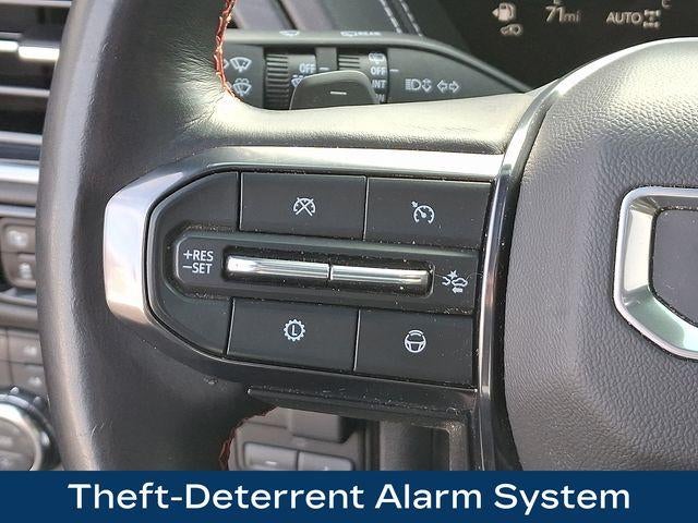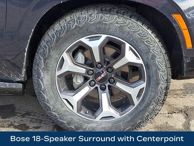 15 Diagonal Multi-Color Head-Up Display, 3 Years of OnStar Services/Safety Services, 4-Spoke Leather-Wrapped Steering Wheel, 4-Way Power Driver Lumbar Seat Adjuster, 4-Way Power Front Passenger Lumbar Seat Adjuster, Advanced Security Package, Advanced Technology Package, Air Ride Adaptive Suspension, Apple CarPlay/Android Auto, Auto High-beam Headlights, AutoSense Hands-Free Power Liftgate, Black Roof-Mounted Luggage Rack Side Rails, Bose 18-Speaker Surround with Centerpoint, Bright Front and Rear Door Sill Plates, Driver Attention Assist, Dual-Pane Panoramic Power Sunroof, Electronic Limited Slip Differential (ELSD), Exterior Parking Camera Rear, Extra Capacity Cooling System, Front High-Approach Angle Fascia, Front Passenger 2-Way Power Upper Shoulder, Fully automatic headlights, Glass Breakage Sensor, Headphones, Heads-Up Display, Heated Driver and Front Passenger Seats, Heated steering wheel, Inside Rearview Auo-Dimming Rear Camera Mirror, Integrated Trailer Brake Controller, Max Trailering Package, Memory seat, Navigation system: GMC Connected Navigation, Perforated Heather and Ventilated Driver and Front Passenger Seats, Power Liftgate, Power Release 2nd Row Bucket Seats, Premium Capability Package with Active Response 4WD, Radio: 16.8 Diagonal Premium GMC Infotainment System, Rain sensing wipers, Rear Seat Media System, Red Horizontal-Mounted Recovery Hooks, SiriusXM with 360L, Smart Trailer Integration Indicator, Sport Pedal Cover Kit, Super Cruise, Theft-Deterrent Alarm System, Vehicle Inclination Sensor, Vehicle Interior Movement Sensor, Wheels: 20 x 9 Machined and Painted.