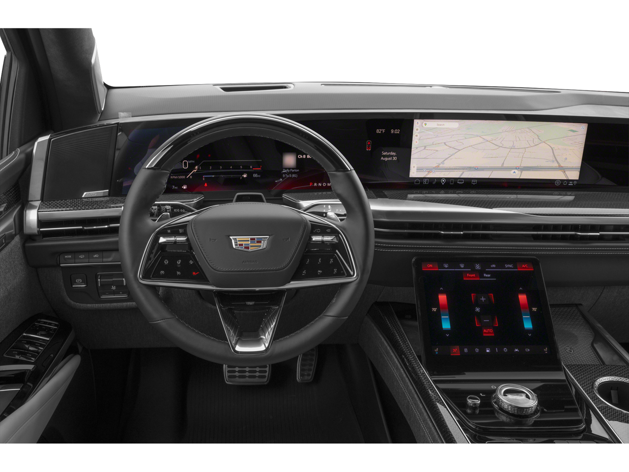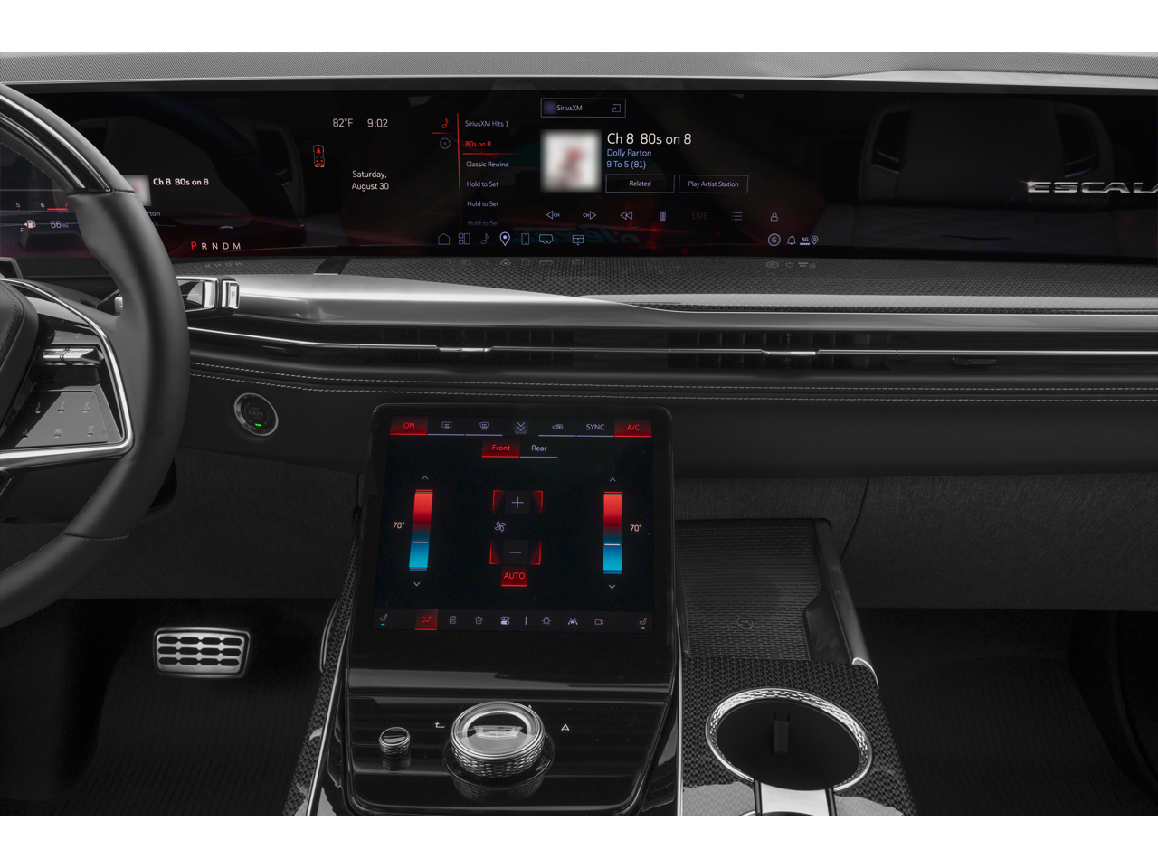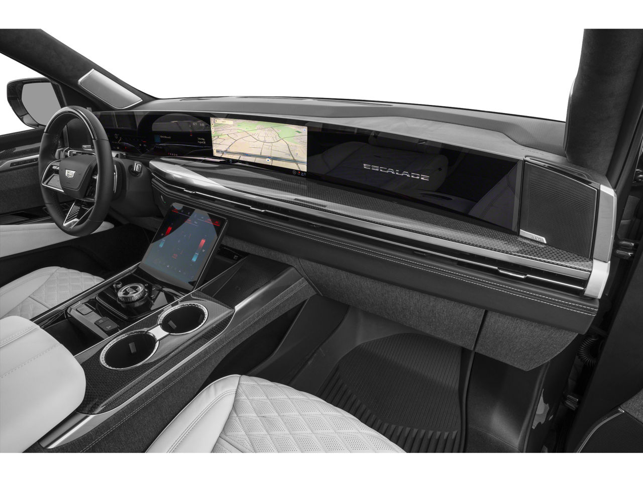 - Onyx Package with Gloss Black Escalade nameplate, 24 Black alloy wheels, and Black illuminated Cadillac emblem